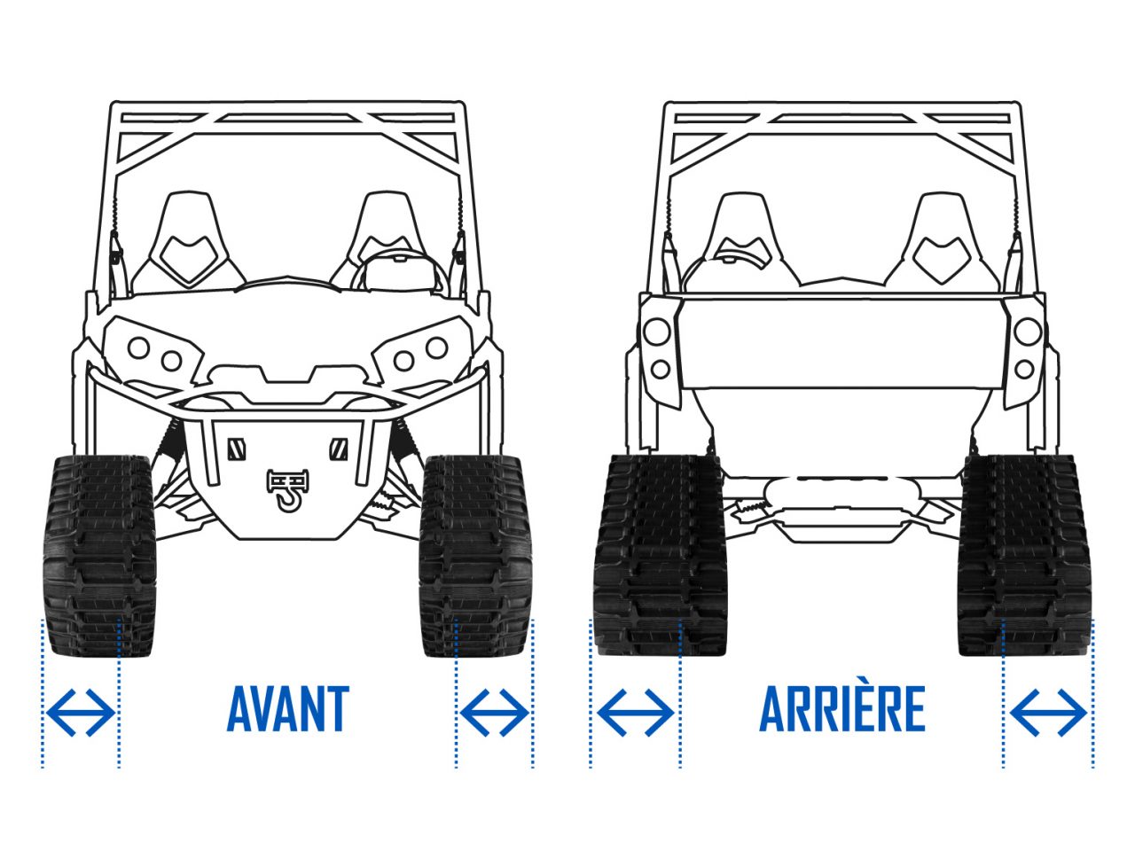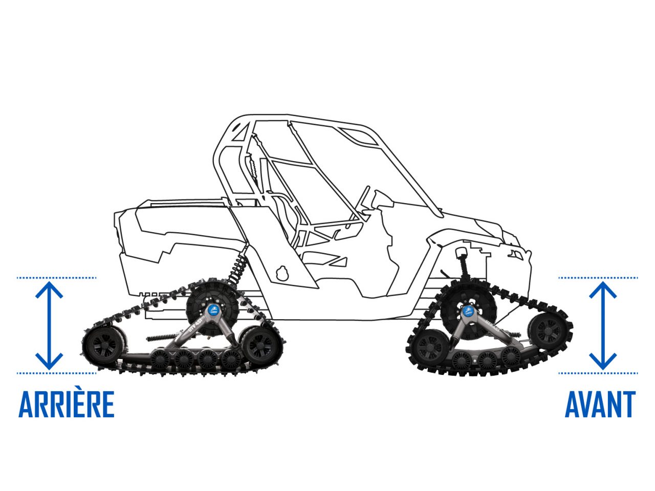 L'installation d'un système de chenilles modifie la longueur, la largeur et la garde au sol du véhicule en raison de leurs dimensions plus grandes.