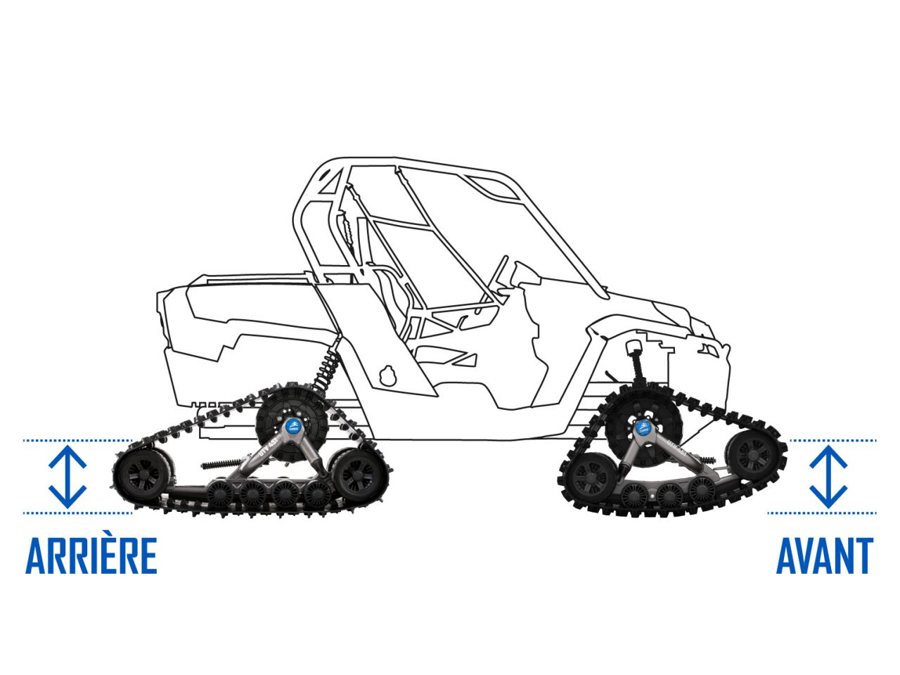 Nos systèmes de chenilles sont faits pour supporter le poids du véhicule et la capacité de charge du véhicule sur lesquels ils sont installés, selon la recommandation du fabricant. Pour plus de détails, réfère-toi au manuel du propriétaire de ton véhicule.