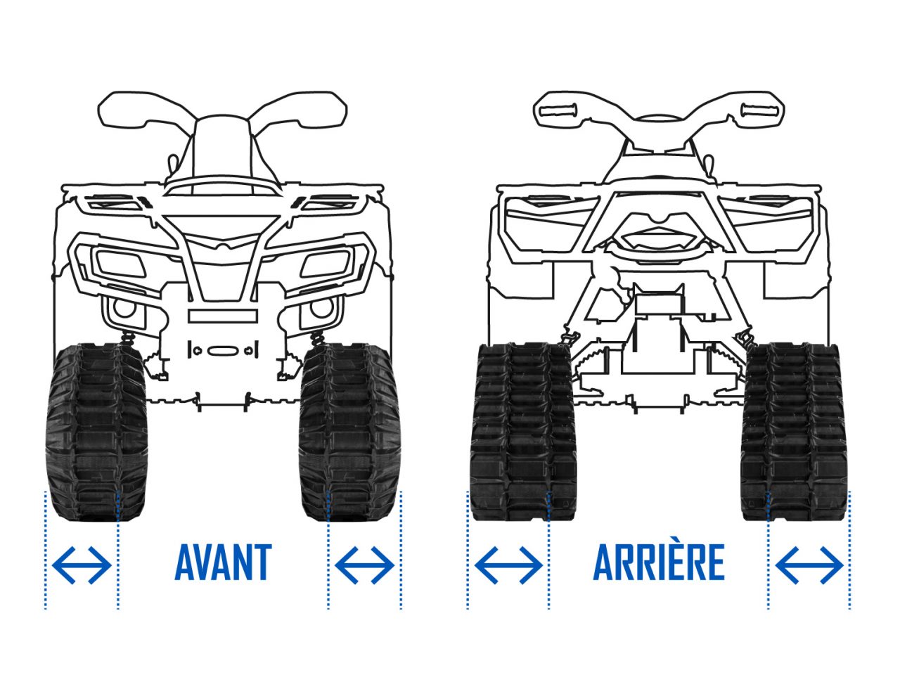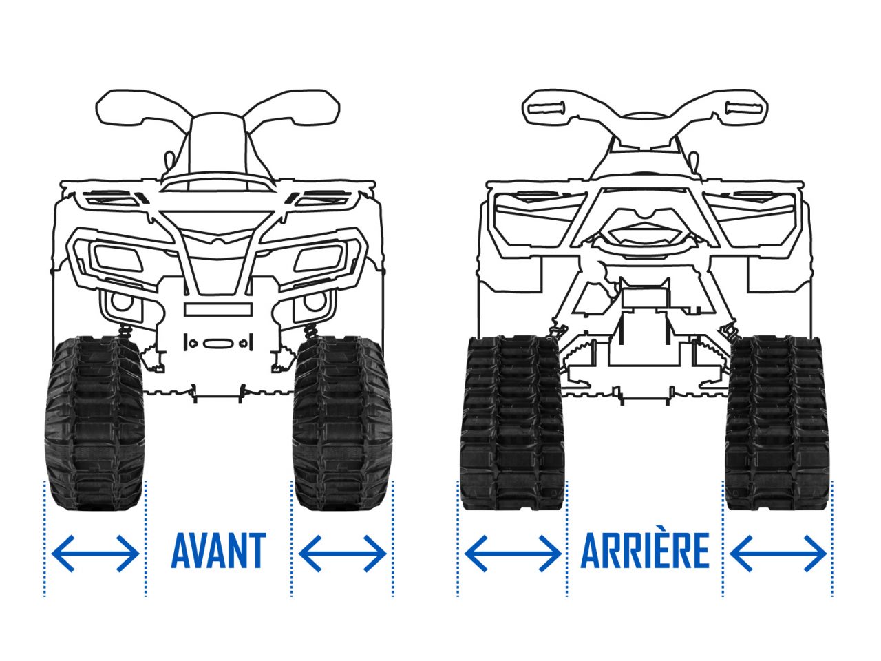 L'installation d'un système de chenilles modifie la longueur, la largeur et la garde au sol du véhicule en raison de leurs dimensions plus grandes.